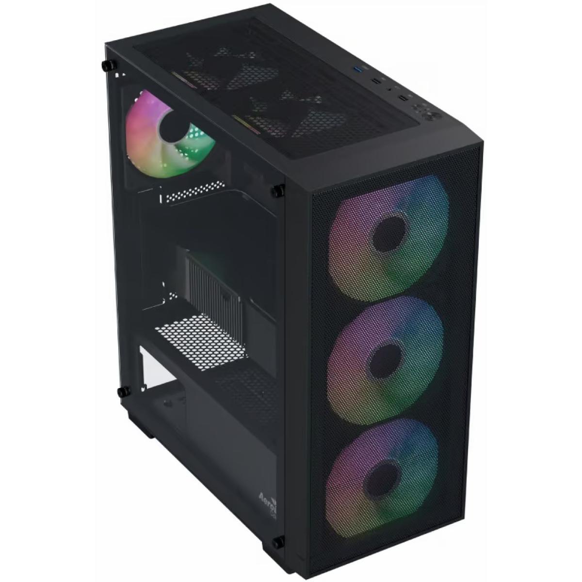 AeroCool B509A Flow (Black) ARGB Stylish ATX Mid Tower Tempered Glass Gaming Case w/ Mesh Front & 6 Pre-installed 120mm ARGB Fans