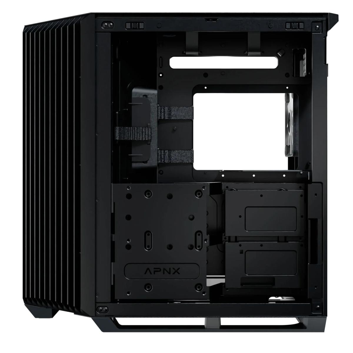 APNX V1 (Black) Dual Chamber Panoramic 2 Glasses Design ATX Mid Tower Mesh Ventilation Pattern Tempered Glass Gaming Case w/ 4x120mm ARGB Fans, Adjustable Motherboard Position Bracket, Support Up To 10x12cm Fans & Type-C