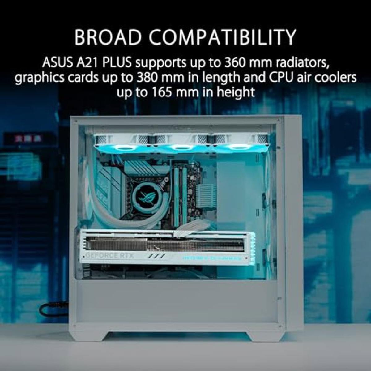 ASUS A21 PLUS (White) Micro-ATX ARGB Mid Tower Tempered Glass Gaming Case, Front Performance Mesh Panel w/ 4 x120mm ARGB Fan