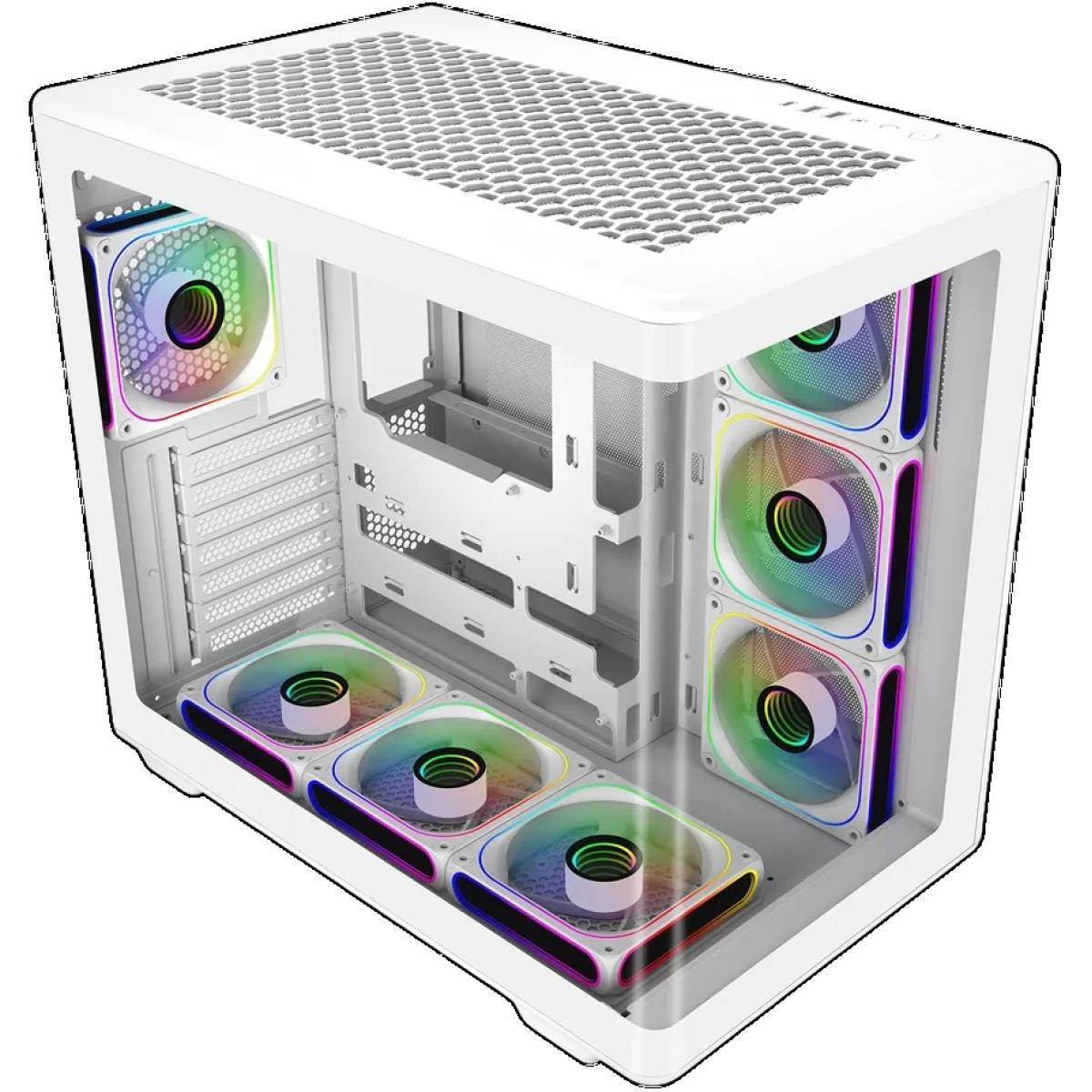 Cooler Master Elite 600 (White) ATX ARGB Mid Tower Tempered Glass Panoramic Dual Chamber Fish Tank Gaming Case w/ 7 x120mm ARGB Fan (Side Reverse) & Type-C