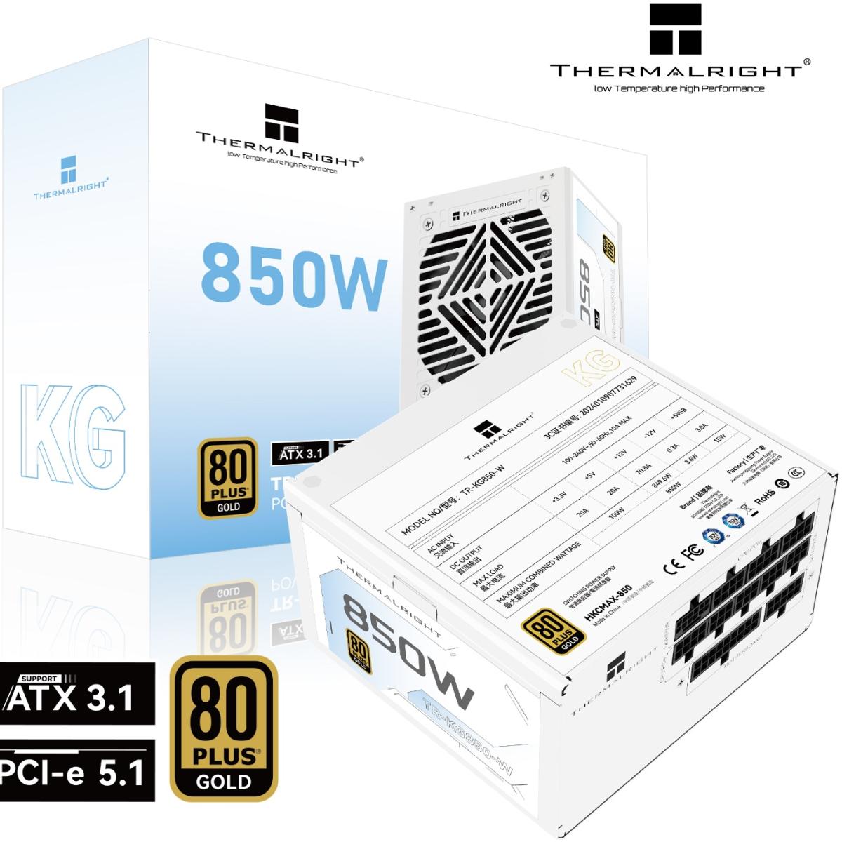 Thermalright (KG-850-W) Gold 850W (ATX 3.1) (PCIe 5.1) 80 Plus Gold Full Modular, Smart Fan - (White) Power Supply